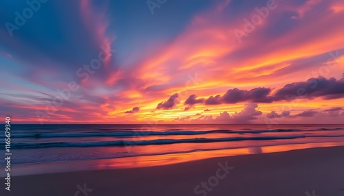 A Tranquil Beach Horizon Awash in Vibrant Colors