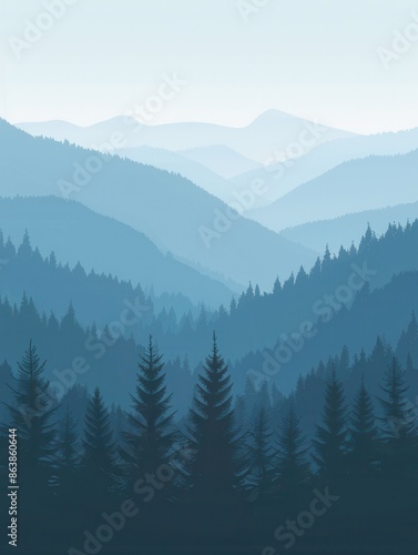 A tranquil scene of a mountain landscape at dawn, with the peaks illuminated by the first rays of the sun. Generative AI