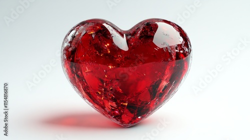 A translucent glass-like 3D heart with hints of red, centered on a pure white backdrop