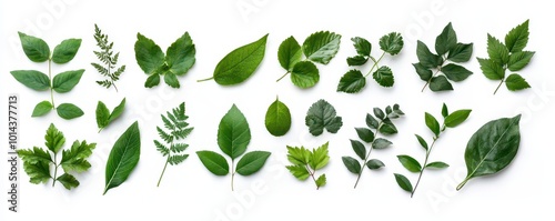 A variety of green leaves arranged neatly, showcasing different shapes and textures, emphasizing nature's diversity and beauty.
