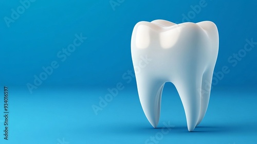 A vector illustration of a tooth on a blue background, designed as a template element.