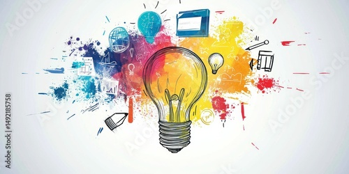 A vector of a team gathering ideas for a creative project, with icons representing teamwork, strategy, and planning.