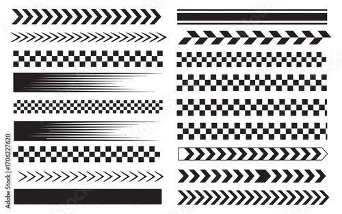 A versatile vector collection of seamless checkered and chevron pattern borders for speed and racing themes