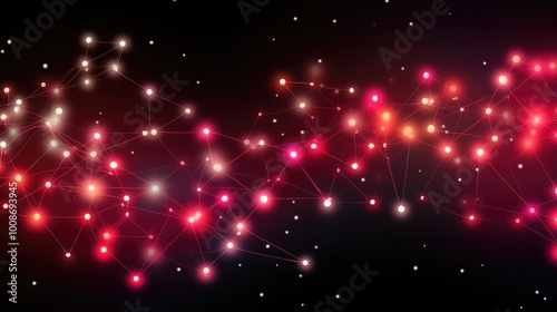 A vibrant abstract background featuring interconnected nodes and glowing lights in shades of red and white.
