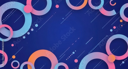 A vibrant abstract background with colorful circles and lines on blue