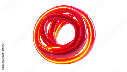 A vibrant, abstract, glossy, red and yellow, interwoven circular form