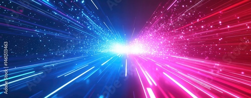 A vibrant abstract representation of sound waves emanating in a gradient of blue and red tones. creating a dynamic visual effect suitable for digital media backgrounds