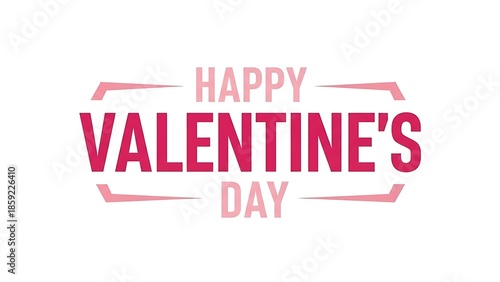 A vibrant and festive graphic design featuring the phrase 'Happy Valentine's Day' in bold red and pink letters with a stylish hexagonal border