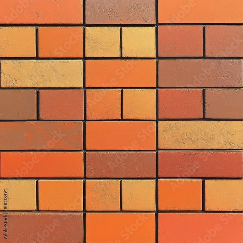 A vibrant arrangement of orange and brown bricks creates an appealing mosaic pattern.