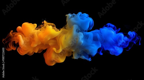 A vibrant blend of swirling orange and blue smoke against a black background, creating a mesmerizing visual effect.