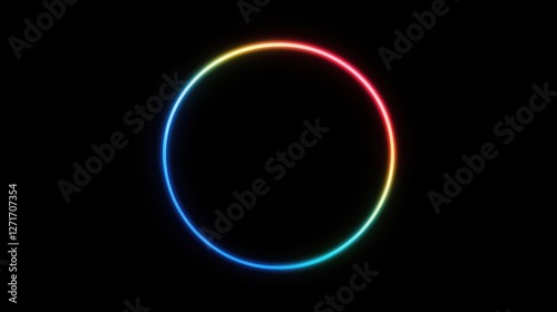 A vibrant circular light effect with a rainbow gradient on a black background.