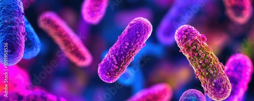 A vibrant, close-up view of colorful bacteria, showcasing intricate details and a dynamic range of colors in a microscopic world.