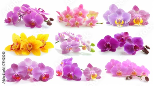 A Vibrant Collection Of Various Colorful Meadow Flowers Arranged on a White Background. Presenting unique shapes and colors, meticulously arranged to highlight their natural beauty.