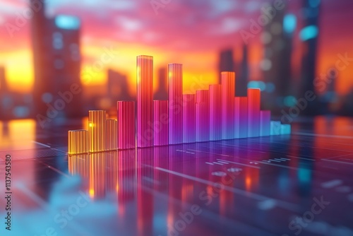 A vibrant, colorful chart reflecting on a glass surface against a cityscape backdrop.