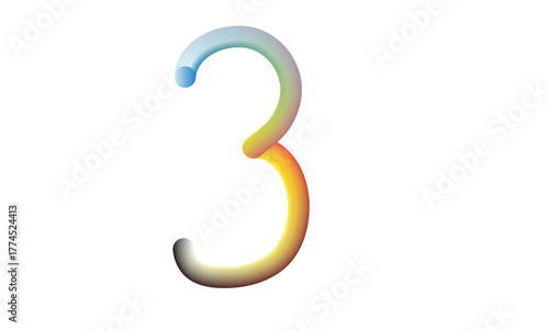 A vibrant colourful and stylized number three with a gradient effect on a white background