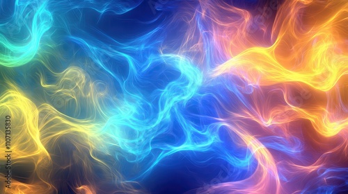 A vibrant digital background with energetic, pulsing light effects and flowing wave patterns.