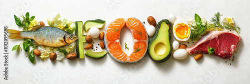 A vibrant display of keto diet essentials showcasing low-carb ingredients arranged artistically on a light background
