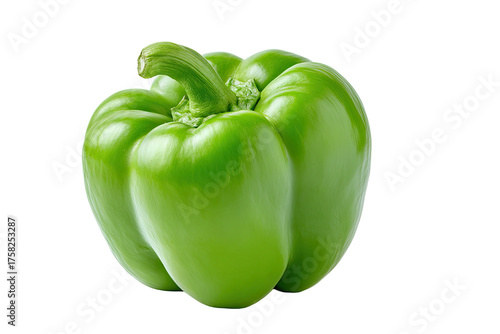 A vibrant, glossy green bell pepper isolated against a stark black background