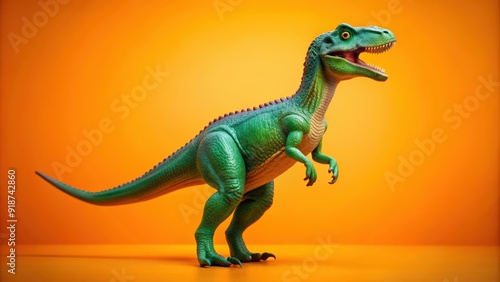 A vibrant green dinosaur standing out against a bright orange background, dinosaur, prehistoric, reptile, ancient, vibrant