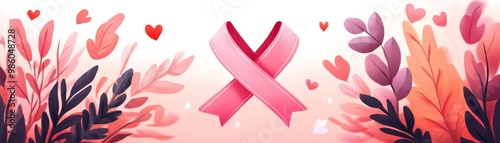 A vibrant illustration featuring pink ribbons and hearts, symbolizing love and support.