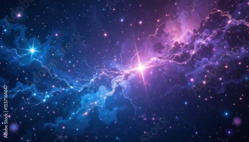 A vibrant nebula with bright stars and colorful cosmic clouds, showcasing a vast and beautiful interstellar landscape.