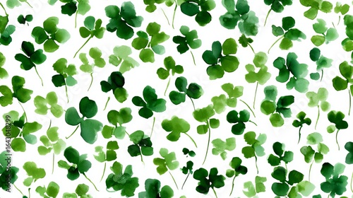 A vibrant pattern of green clovers on a white background, showcasing nature's beauty and freshness.