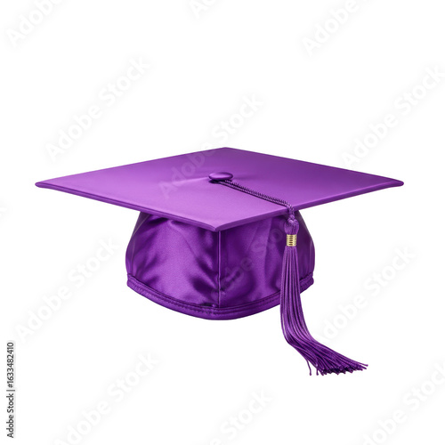 A vibrant purple graduation cap with a matching tassel and golden band, symbolizing academic achievement and success. Perfect for educational and celebratory designs.