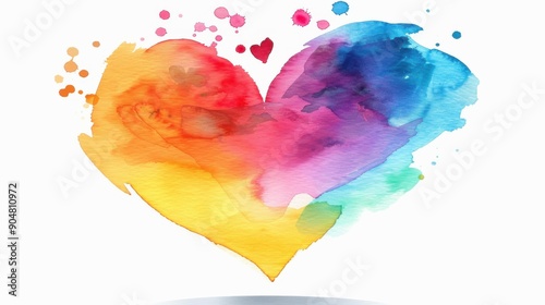 A vibrant rainbow heart made with watercolor, this illustration captures the essence of love and creativity in a colorful style.