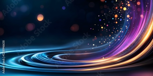 A vibrant, swirling abstract design with flowing colors and sparkling particles against a dark background. Concept Abstract Art, Vibrant Colors, Flowing Patterns, Sparkling Particles, Dark Background