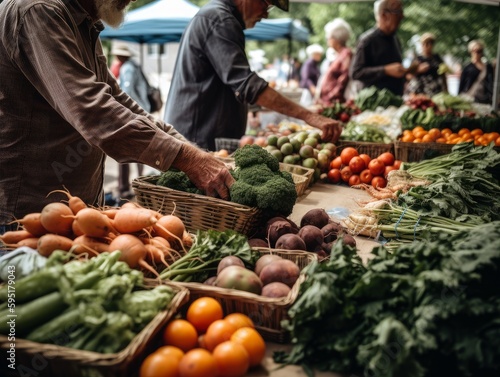 A vibrant table at a farmer's market displays an array of fresh, locally-grown produce