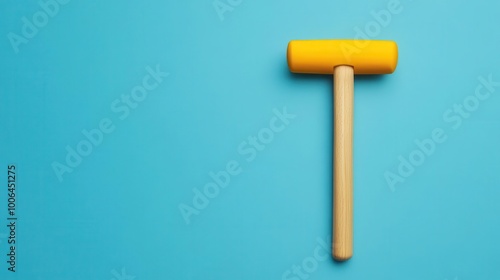 A vibrant yellow rubber mallet resting on a bright blue surface, perfect for DIY projects and home improvement visuals.