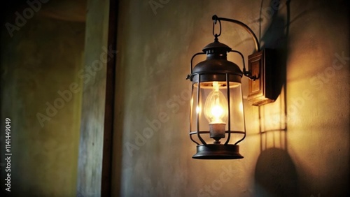 A Vintage Lantern Mounted on a Wall with a Warm Glow