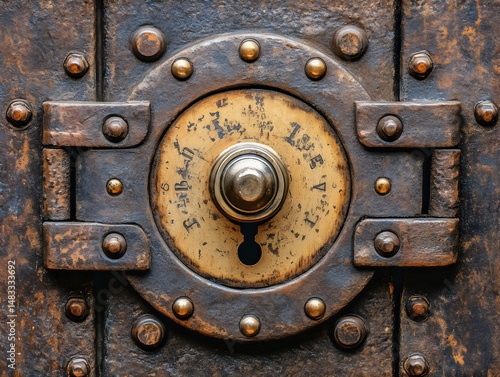 A vintage lock displayed prominently showcases intricate details and aged patina, revealing the craftsmanship of an earlier time. The round dial and aged metal tell stories of security and history