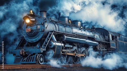 A vintage steam locomotive emits steam, showcasing its powerful design and nostalgic charm.