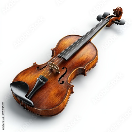 A violin, classical music instrument, 3D rendering, polished wood with strings, isolated on white background