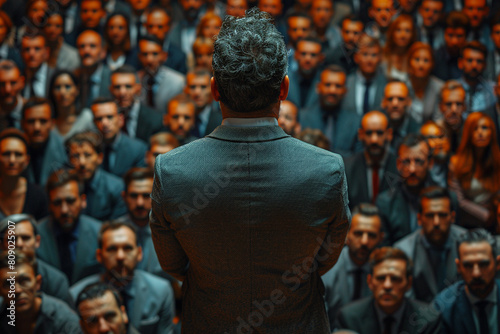 A visionary business leader addressing their team with passion and confidence, inspiring them to reach new heights of achievement. Top view