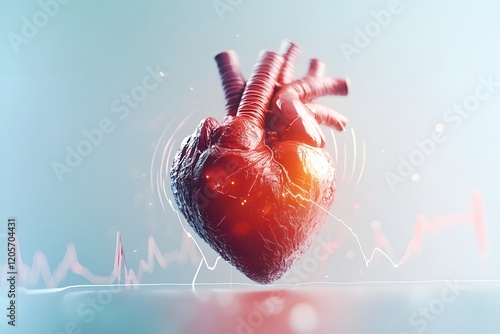 A Visually Striking 3D of a Glowing Red Heart with Dynamic ECG Wave Patterns