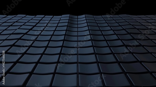 A visually striking surface of undulating black tiles, creating a dynamic and modern aesthetic against a dark background.