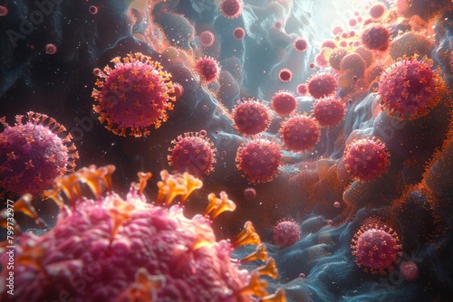A vivid, highly detailed depiction of the battleground at the cellular level, AI Generative