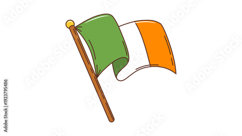 A waving Irish flag illustration on a pole, symbolizing national pride and identity