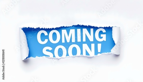 A white background with torn paper revealing bright blue underneath, displaying bold white text reading ‘COMING SOON!