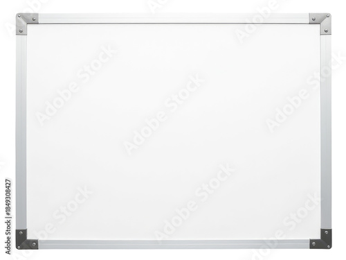 A white board with a metal frame on a white background, ideal for presentations and note-taking