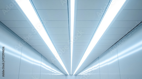 A white ceiling with bright neon lights, seen from below. This image is perfect for adding your own text or design.