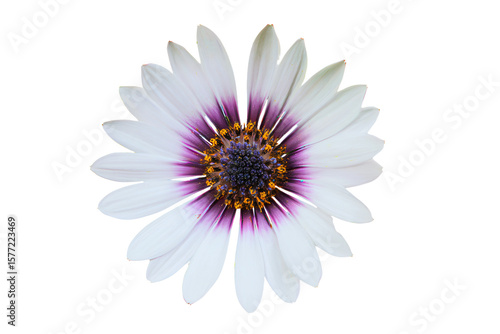 a white flower with purple center on a white background