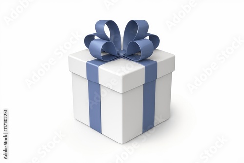 A white gift box with a blue ribbon, symbolizing a present or celebration.