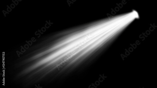 A white light beam is shining on a dark background. The light is bright and creates a sense of movement and energy
