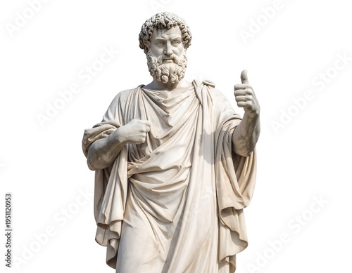 A white marble statue of a man with curly hair and a beard (1)