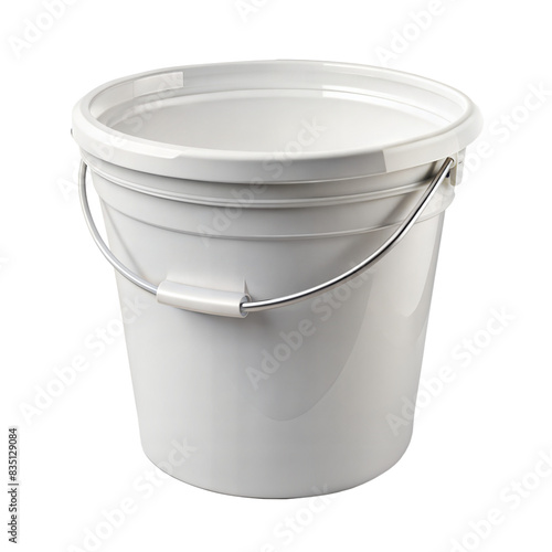 A white plastic bucket with a silver handle isolated on a transparent background