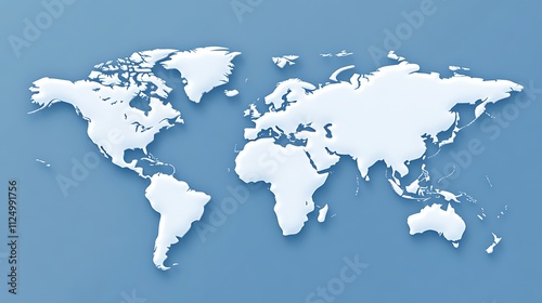 A white world map on a light blue background.