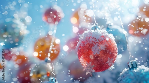 A Winter Wonderland landscape filled with delicate snowflakes and colorful balls